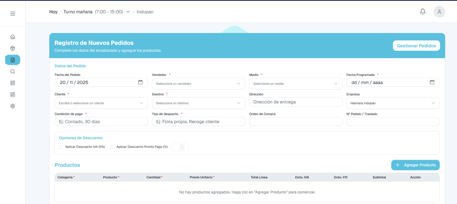 Sistema completo de gestión de pedidos de clientes que integra recepción, procesamiento, preparación y seguimiento en tiempo real, asegurando entregas precisas y oportunas.